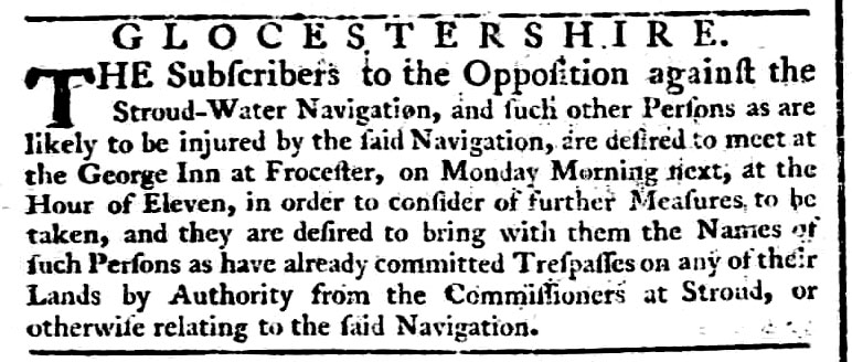 Entrepreneurial contractor Benjamin Grazebrook had promoted the building of the Stroudwater Canal, and along with his sons Joseph and Thomas had profited from their construction. As well as being one of the Stroudwater Canal’s proprietors, Grazebrook senior held several positions within the company during the canal’s construction, during which time he began operating barges from Dudbridge. Shortly after the canal was completed, in association with his son Thomas, Grazebrook established market boats running between Wallbridge, Gloucester and Bristol. Meanwhile, his son Joseph became the clerk and later treasurer of the Stroudwater Company. When the opportunity arose, the Grazebrooks began running their vessels on to Brimscombe, where they were met by the barges of Bowley and Tovey (who operated between Brimscombe and Cirencester) and by those belonging to John Walker (who operated on the upper Thames). In order to cope with their hoped for increased share of the Bristol trade, Benjamin Grazebrook took over a trow being built by the Thames & Severn Canal Company, and naming her Stroud Galley, put her into the Bristol trade running in tandem with his existing vessel. Continuing the family business, Thomas Grazebrook later went into partnership with Roff Newman, who had previously been operating a trow on spring tides to Bristol and a weekly barge between Stroud and Gloucester. In 1809, The Grazebrook/Newman partnership was dissolved when, by mutual consent, Thomas Grazebrook withdrew. Newman then entered into a partnership with Edward Heane of Gloucester. The firm of Heane and Newman continued in the Bristol trade for several years before withdrawing and concentrating on the Gloucester trade using the barge Nancy, master John Knight.