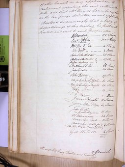 Resolved that Sir Edward Littleton Bart. James Perry Esq, Thomas Lane Esq, James Black Esq, Edward Loveden Esq, Christopher Chambers Esq, James Perry Esq, Thomas Lane Esq, Brownlow Bate Esq, Lowbridge Bright Esq, and Robert Rolleston Esq. be a committee for the purposes of superintending, directing and managing the trade of this company. And the stock and funds belonging to the same. Any three of the committee to make a quorum and report to the general assembly annually in London.