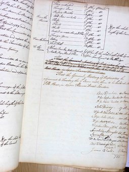 Mr Samuel Smith signed over to the treasurer six hundred and thirty pounds two shillings, and five pence between Lady day and to about Michelmas last after deducting payments for rent of roads and lands the maintenance of the fire engine, repairs of the locks and buildings and for land and clerk’s salaries.