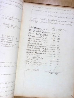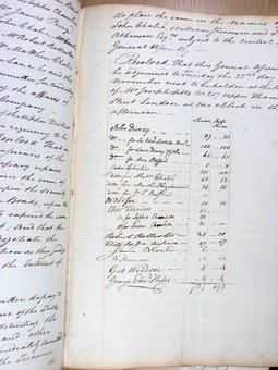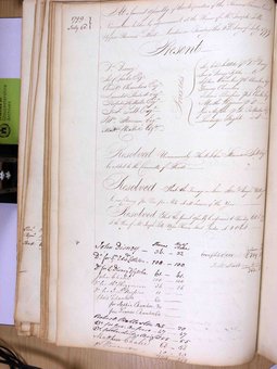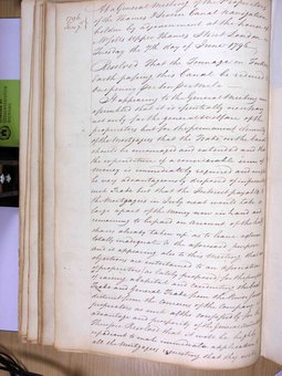 Resolved that the sum of £2342. 10s. 0d being a sum equal to 2 per cent on the company’s debt of £104,425 due on mortgage and on £12,700 due on bond amounting to £117,125 be paid to the treasurer (J S Salt of 80 Lombard Street) to each mortgagee and Bond creditor on the 16th of August next on account of interest due to them respectively.