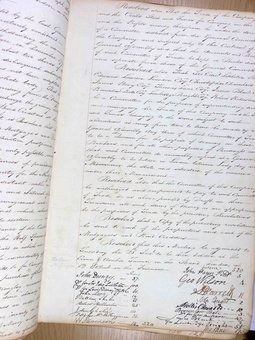 Mr Sam Smith to collect and arrange all the conveyances, leases, contracts, bargains and receipts for lands or buildings and copies of all verdicts of the commissioners belonging to the company.
