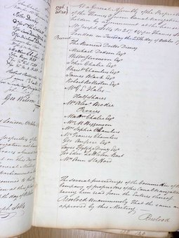 The following elected as a committee: Sir Edward Littleton Bart, Edward Loveden Esq, Chris Chambers, Lowbridge Bright, John Chalie Esq, Mr Carter, Mr James Black, Rev. Doctor Disney, Robert Rolleston, Brownlow Bate Esq., Matthew Chalie, Lancelot Shadwell, SJohn Hayes Pettit.