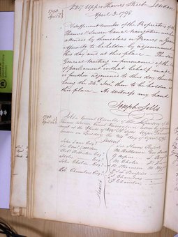 Resolved that the trade be uniformly conducted and carried on as well on the River Severn as on the Thames according to the resolutions of 14 & 28 Jun 1796 in the name of the Thames and Severn Canal company in conformity to the inscription and registration of the vessels of this company.