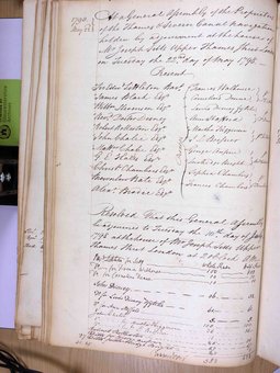 In consequence of considerable bounties being allowed by the Oxford Canal Company on the importation of salt. Resolved that a bounty of sixteen pence per ton be allowed for six months from Thursday to Mr Jacob upon all salt imported by him in his own boats to any place in the River Thames above Marlow.