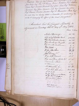 Sir Edward Littleton, Edward Loveden Loveden, Chris Chambers, Lowbridge Bright, James Perry, James Black, John Chalie, Rev. Doc. Disney, Rob. Rollaston, Matthew Chalie, Lancelot Shadwell, John Lane, William Stevenson, elected a committee for managing the affairs of the canal.