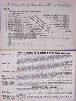 Table of distances between wharfs on the Thames & Severn Canal and the Stroudwater Navigation, together with rates for different cargoes.