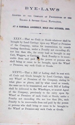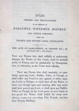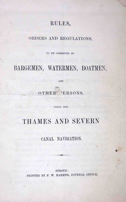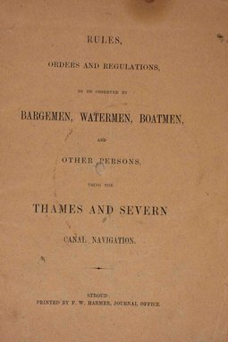 Rules, orders, and regulations to be observed by Bargemen, Watermen, Boatmen and Other Persons using the Thames and Severn Canal Navigation, with byelaws added in 1860