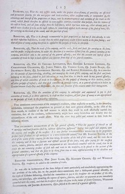 Printed minutes of a General Assembly that agreed to circulate the Committee’s proposal that each proprietor should give up three-fourths of his shares so that each mortgagee and bond-holder could be given one share for every £100 of his principal claim.