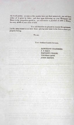 Printed letter explaining that a deed had been prepared to implement the terms for reorganising the Company’s capital agreed in June 1808 and that a Bill had already passed the House of Commons.