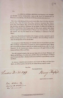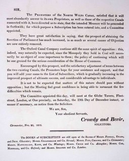 Printed letter advertising that the promoters of the North Wilts Canal had opened a subscription and appointed a Committee.