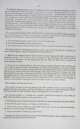 2. By the canal from Bristol to Gloucester, passing through the Stroud Canal, the Thames and Severn canal can compete with advantage by a shorter line of navigation, for its trade to Bristol with the Wilts and Berks who are about to join from Wootton Bassett summit to Bristol by a canal. The Thames and Severn will compete equally for the London trade, by the improved Thames or the Abingdon and Grand Junction at or near Cricklade as agreed on the 14th July at Abingdon.