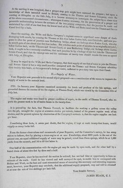 1791- levels and produce of the Isis springs and grounded thereon the success of the fire engine, at Thames Head.