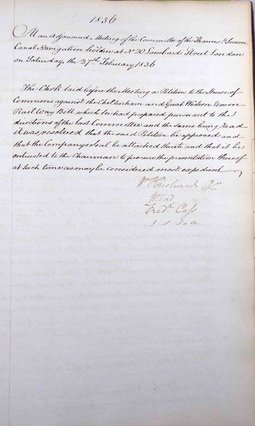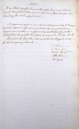 Agreed to buy land for the canal (formerly rented) from Mr Lockyer’s trustees.