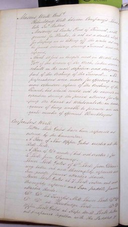 Masons’ work: About 50 ft in length and in width about 2/3ds of crown of arch, taken down and rebuilt in most dangerous and defective part of arching of Tunnel. NB – more extensive repair could not be carried out during period allowed for stopping canal at Whitsuntide. Shortage of bricklayers.