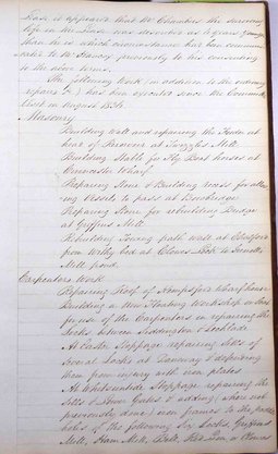 Carpenters’ work: Latton Lock gates repaired; Pair of new upper gates erected at Bell Lock; Pair of new upper gates made but not erected for 4th lock from Daneway; Lower lock gates taken out and repaired. Iron paddle frames attached at 6th lock from Daneway, 7 lock, Twizzles Mill, Bowbridge Lock; Upper lock gates at Hope Mill, Ham Mill Lock, Griffins Mill Lock, Bowbridge lock.